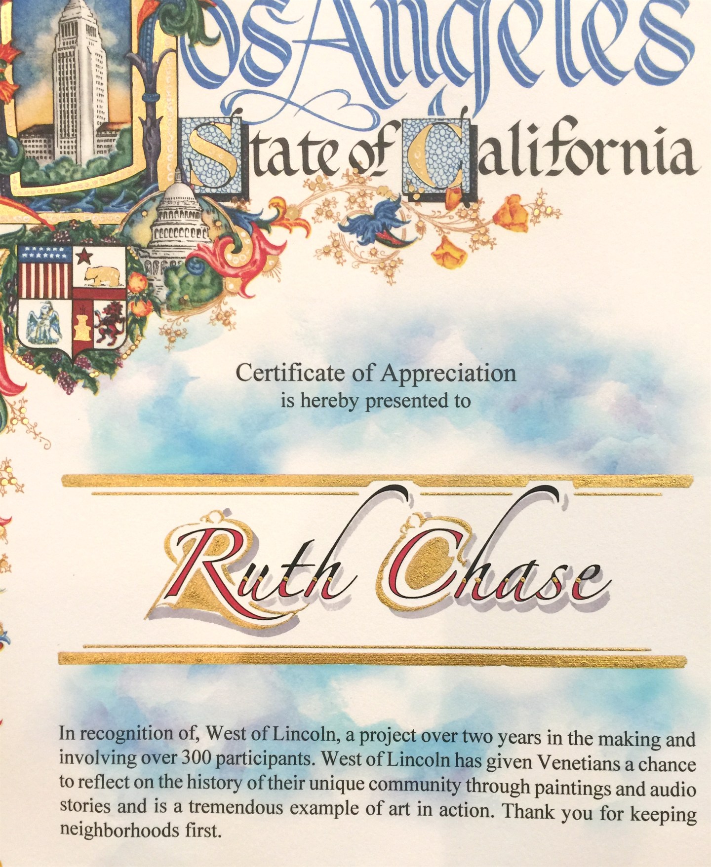 I opened the mail today and found this certificate of appreciation for the West of Lincoln Project. Not sure what it means other than it felt great to have it in writing from an unexpected source.