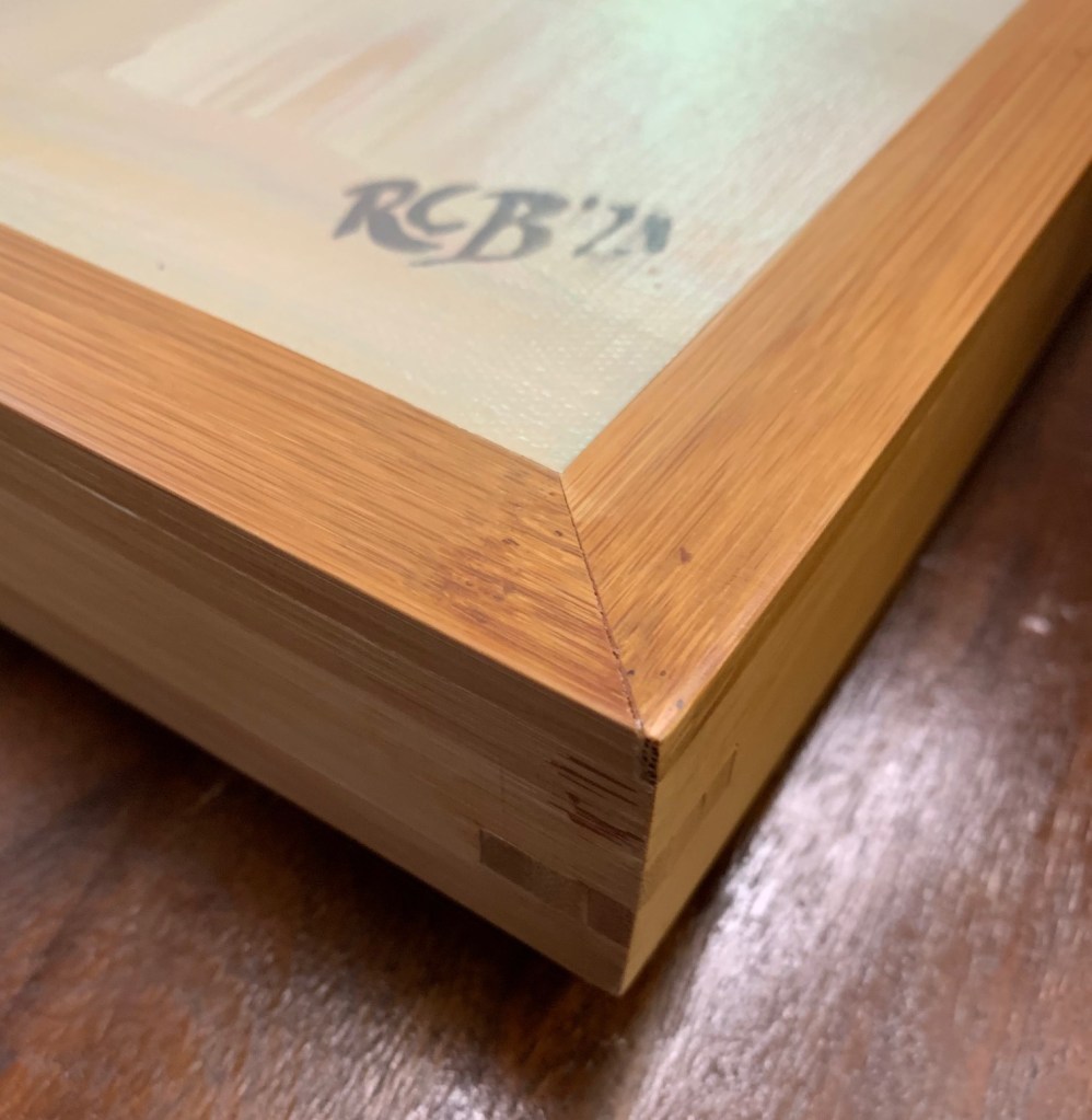 Every painting has an optional Gallery Bamboo Frame – 16” x 20” x 1-3/8”, these frames are as durable and beautiful.