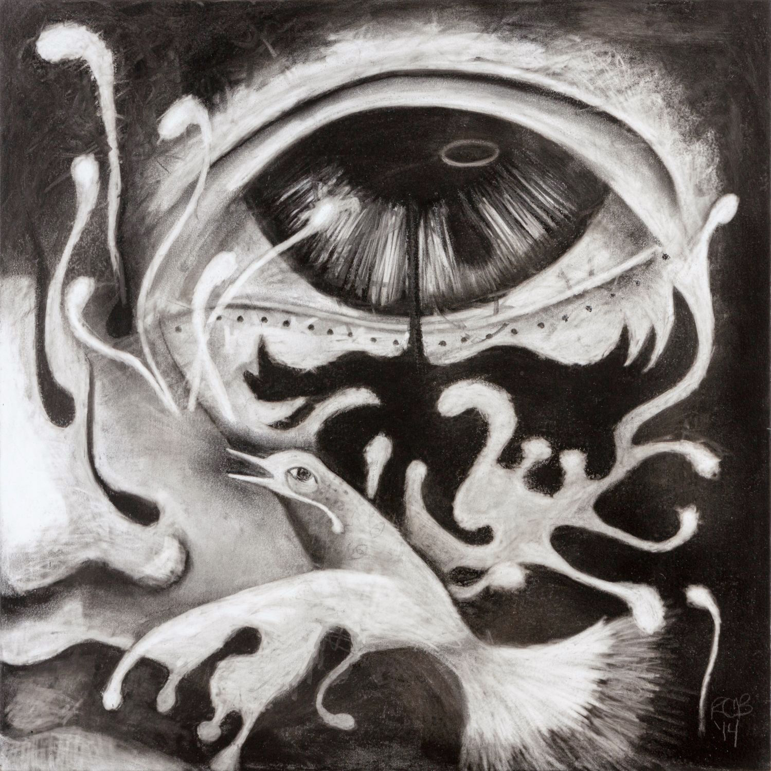 charcoal on wood, 20 x 20