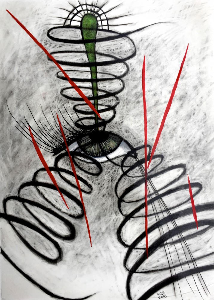 charcoal, pencil on paper