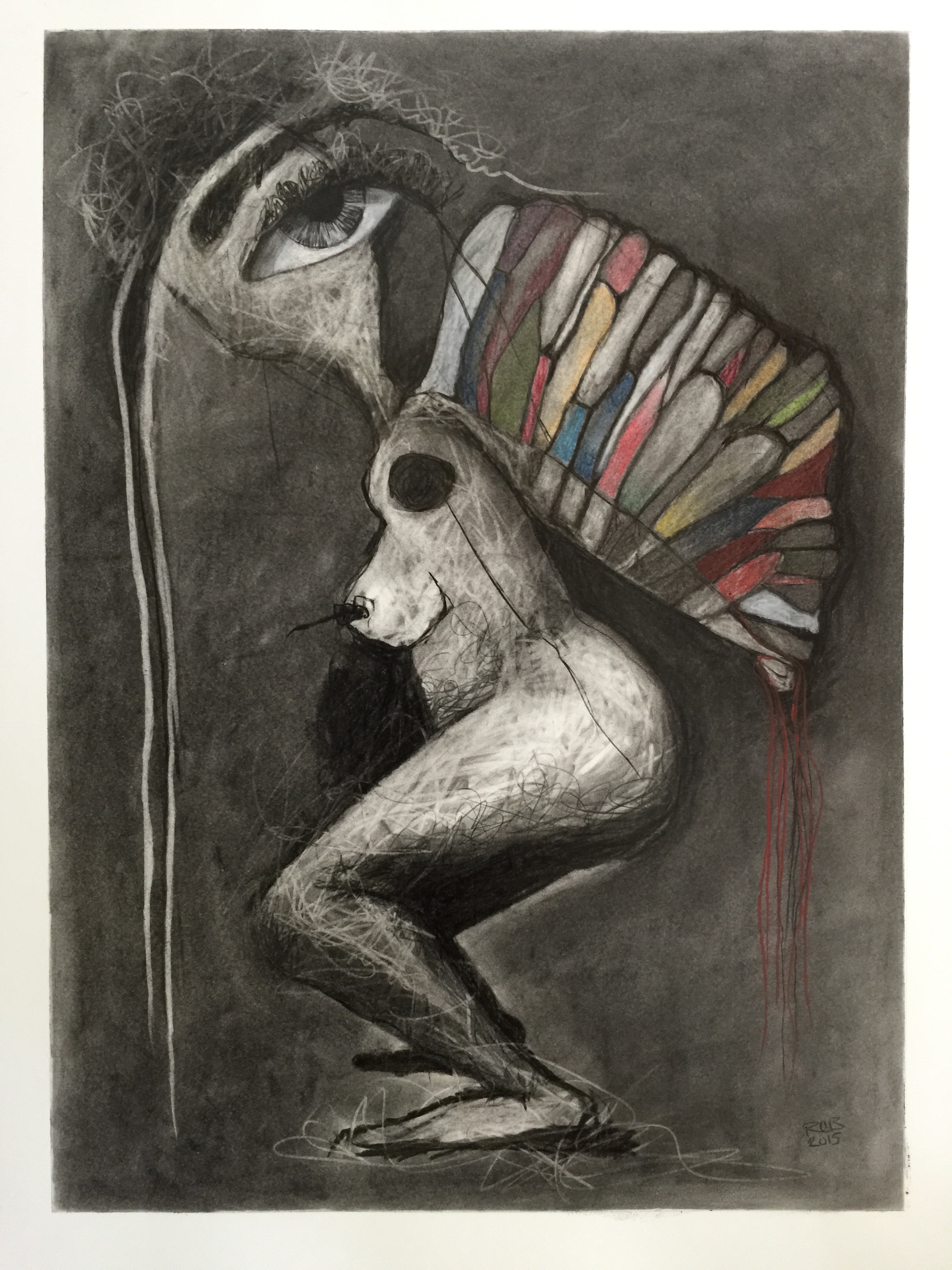 charcoal, pastel, acrylic on paper, 22 x 28